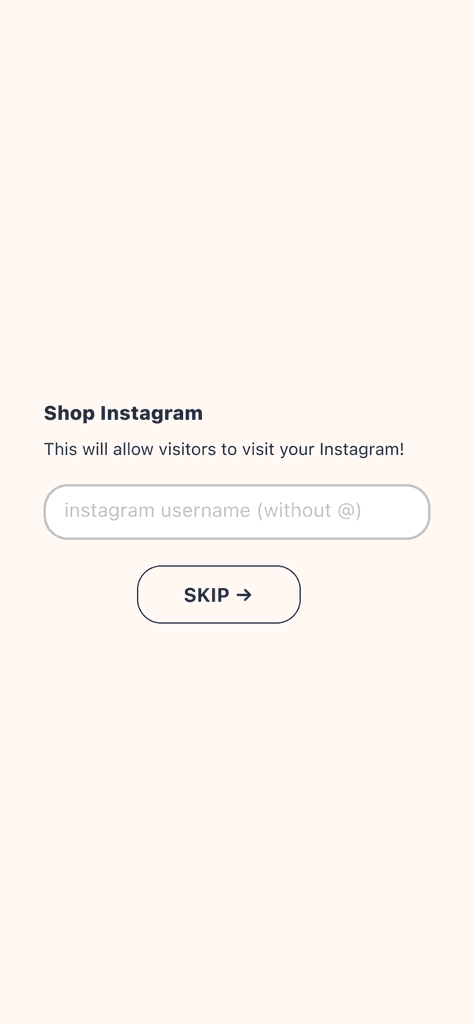Creators are prompted to enter their Instagram usernames and upload product photos, while visitors can simply sign up and proceed to the home page.